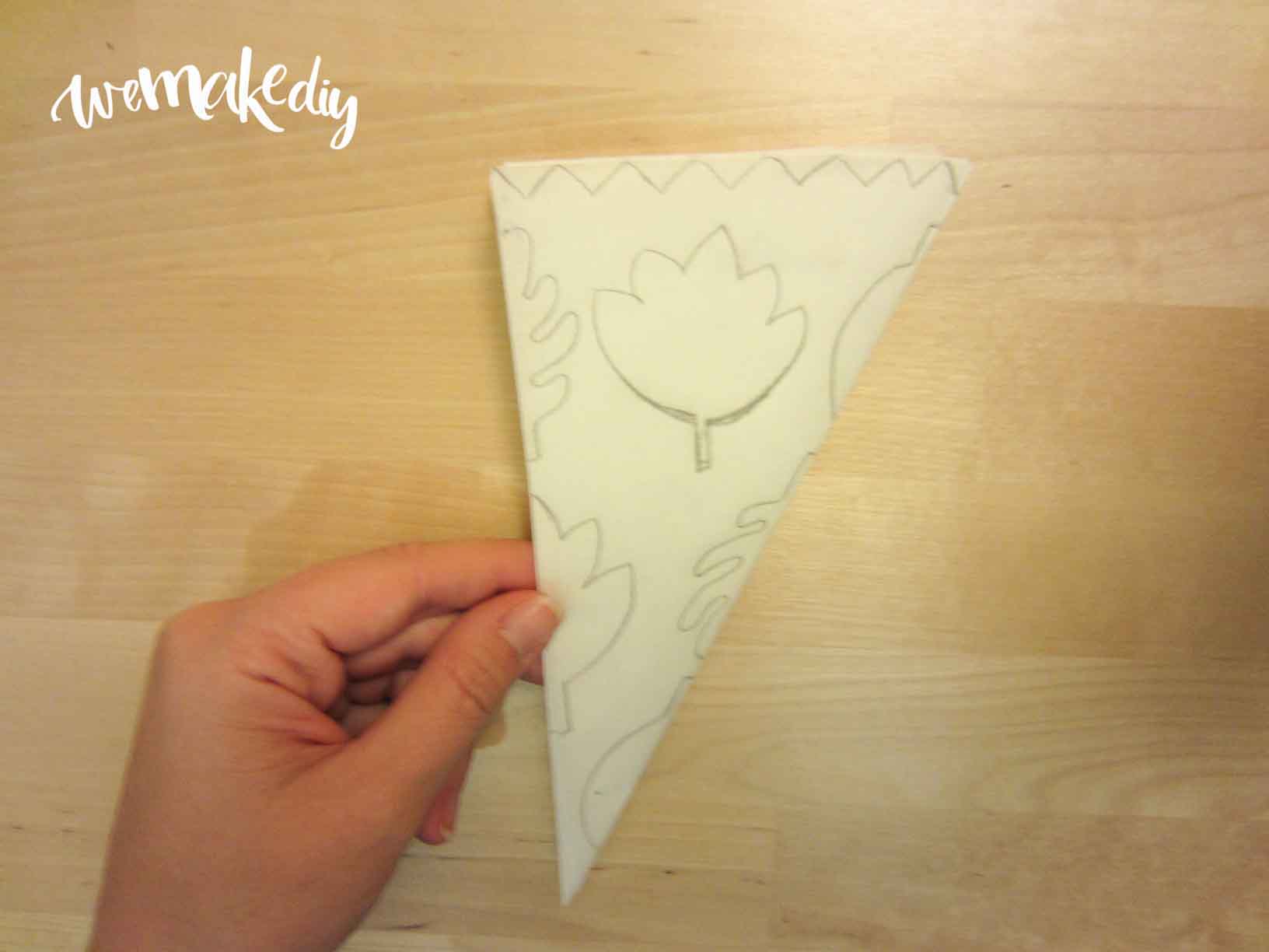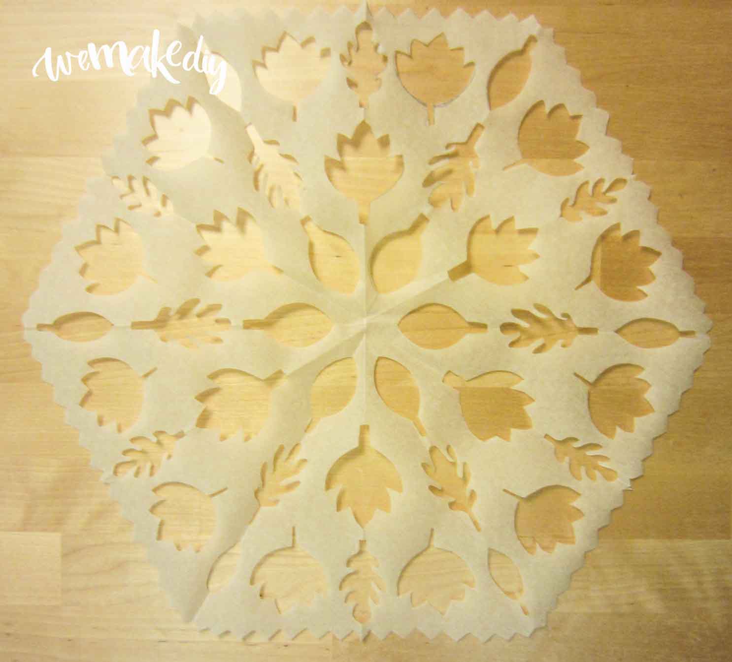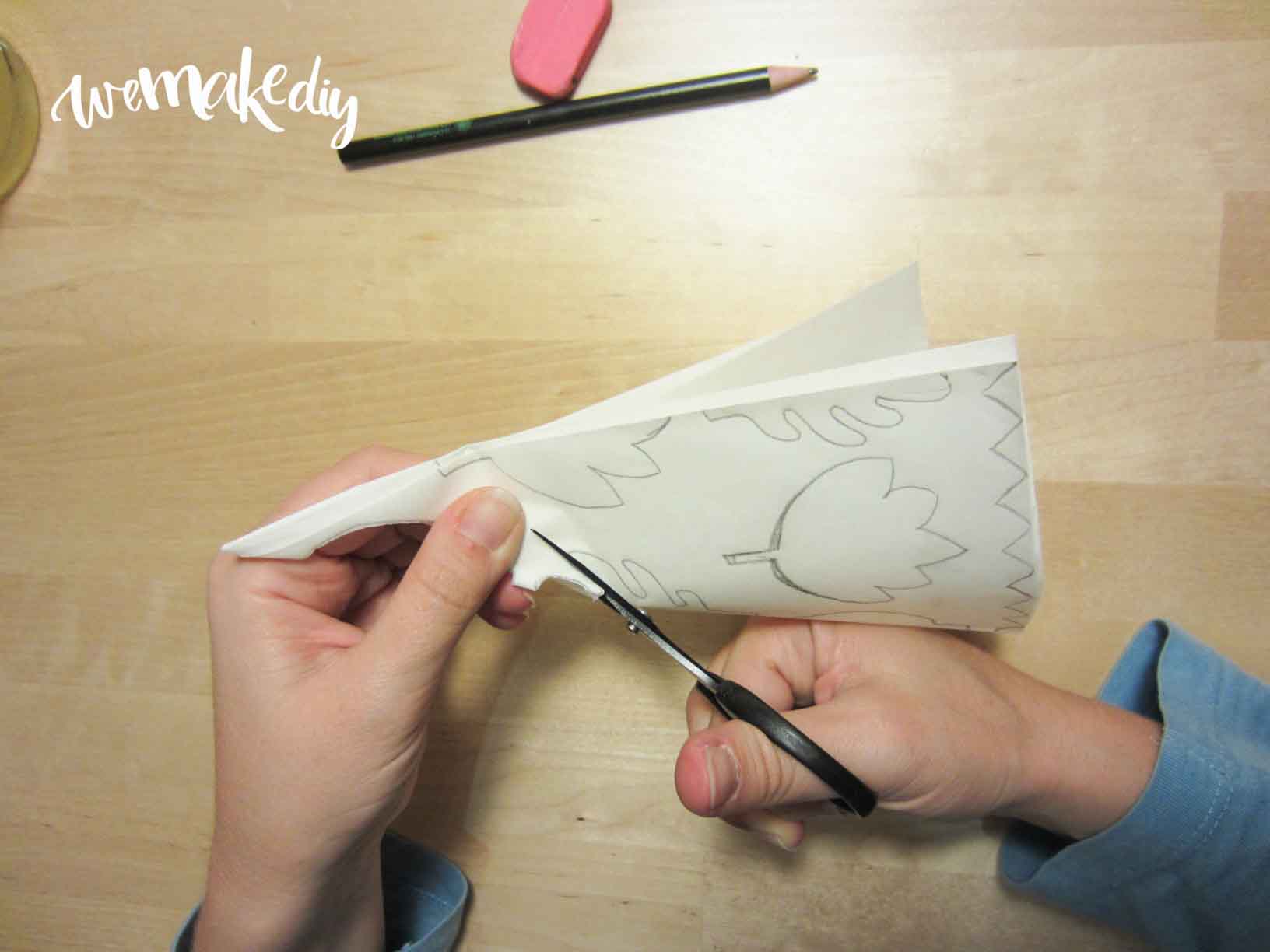 Nosotros hemos optado por un diseño otoñal, con hojas de diferentes árboles, pero puedes hacer cualquier diseño que se te ocurra. Una vez pintado, vamos a recortar las figuras