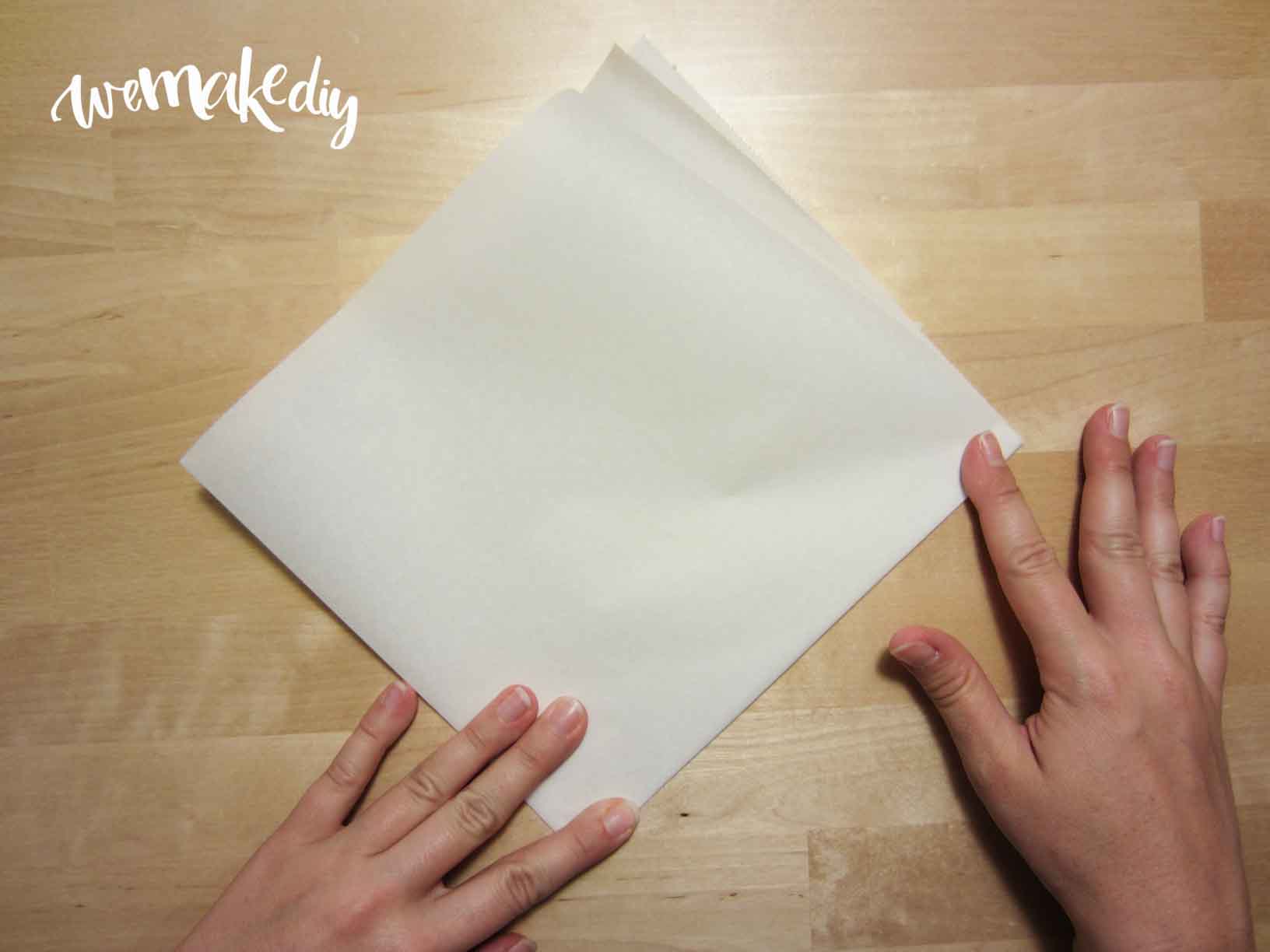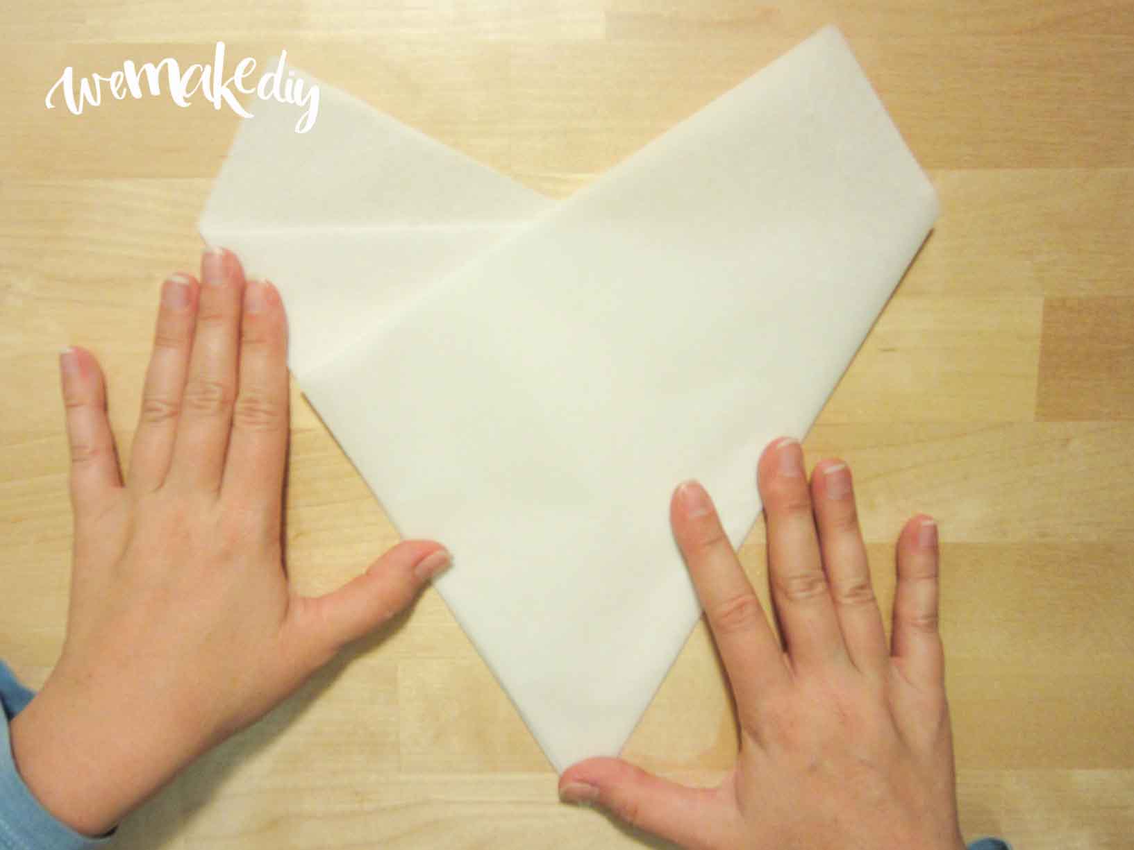 2- Vuelve a doblarlo nuevamente a la mitad sólo para marcar la línea media del papel.