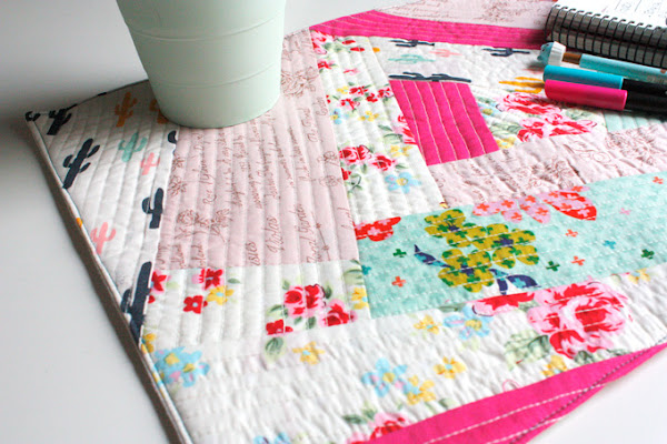 La técnica se llama "Quilt as you go" que significa ir acolchando segun vas cosiendo cada trocito de tela. Es la técnica perfecta para aprovechar los montones de retales de todos los tamaños que vamos acumulando al cabo del tiempo (ya sabeis a que me refiero), todas tenemos una cajita o varias de retales diversos....que nos da pena tirar por si acaso....ues es el momento perfecto!!! Os he aplicado la técnica en un proyecto sencillo, un mantel individual o tu y yo, pero podeís hacer maravillas con ella, espero me mandéis vuestras versiones!!