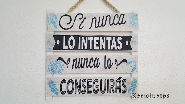 Hola, desde hace un tiempo están muy de moda y en tendencia los carteles inspiración, se trata de buscar una frase motivadora y plasmarla en unos tablones o base de madera. Hay diferentes técnicas para hacerlos e infinidad de formas para decorarlos.