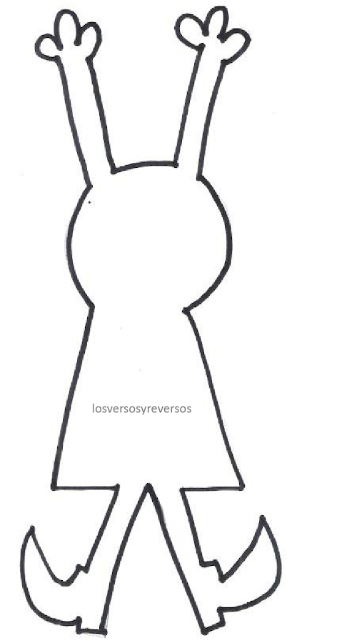 Imprime el molde y pégalo en una cartulina y recorta todo el contorno y separa manos y piernas.