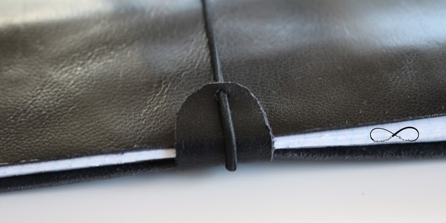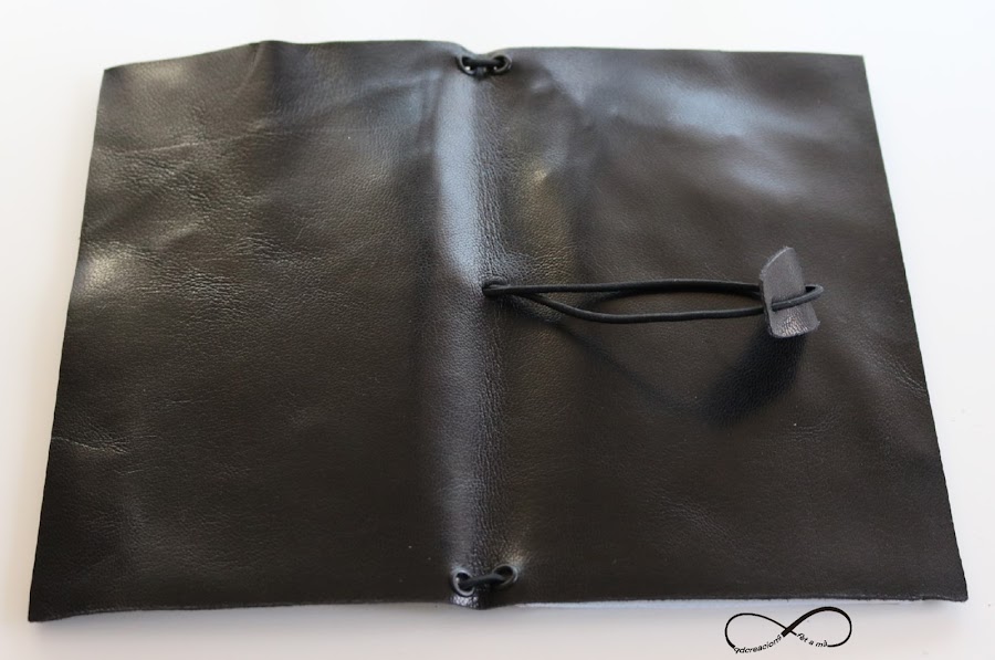 Aquí podéis ver que tanto en la parte superior como inferior hay 4 orificios por donde pasan las gomas con las que se sujetarán las libretas de su interior.