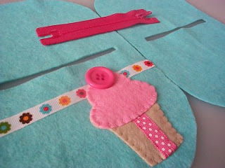 Costuramos primero el cierre y luego doblamos a la mitad, como vemos en la imagen.