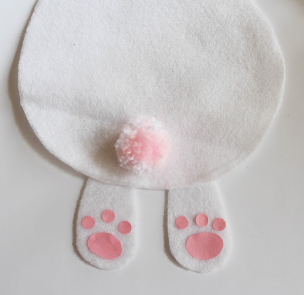 Por último, pega el pompóm de estambre, lo puedes comprar o hacer tu mismo, aquí te dejo el video tutorial para hacer pompones de lana con pedazos de cartón y así también miras, otros conejos DIY muy originales.