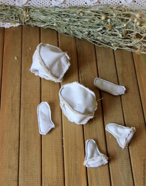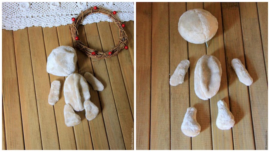 5.-Voltea por el lado derecho todas las piezas del muñeco de nieve.