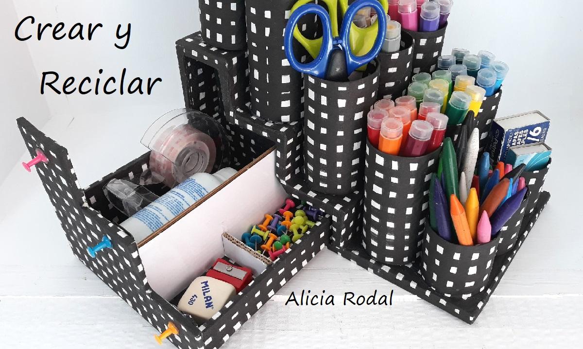 Con este tipo de ideas de organizadores puedes guardar muchísimas cosas, todo depende del tamaño que lo quieras hacer y del espacio que tengas disponible en tu mesa de trabajo.
