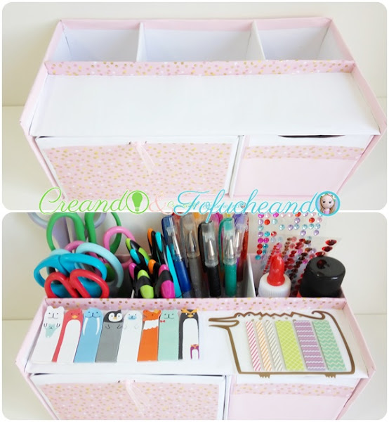Lo mejor de este organizador es que puedes personalizarlo como más te guste, haciéndole mas departamentos en la parte trasera, o menos, jajaja, e igual con los cajones, puedes hacer uno sólo del largo del organizador, dos, o tres más peques.