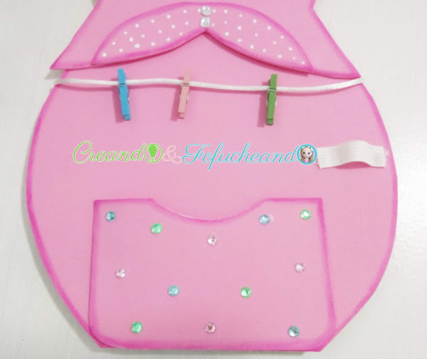 Colocamos el bolsillito y el tendedero de notas, jajaja, y la decoramos como más nos guste.