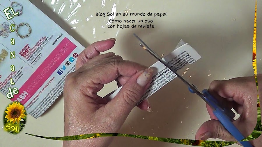 juntamos dos o tres hojas y cortamos tiras de 3 cm. más o menos de ancho, cortamos barbitas,