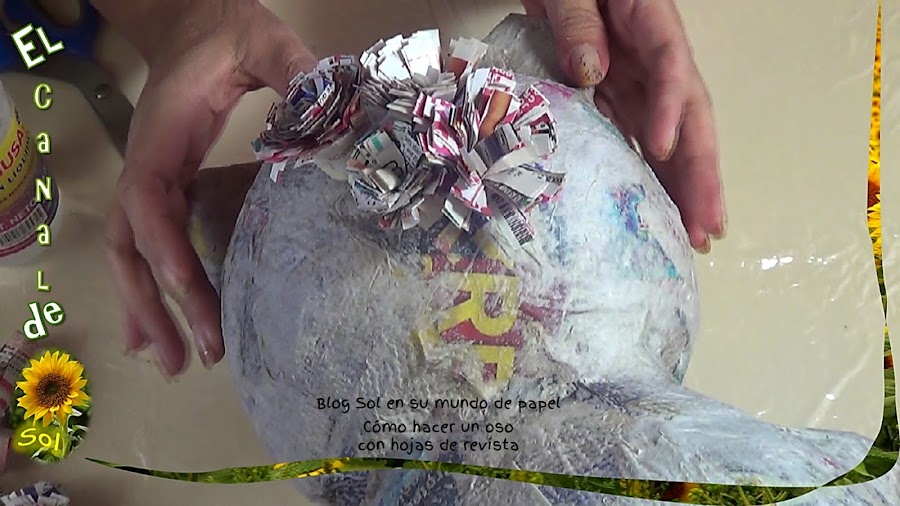 Ya como última capa de cartapesta sellaremos toda la superficie de nuestro osito con servilleta.