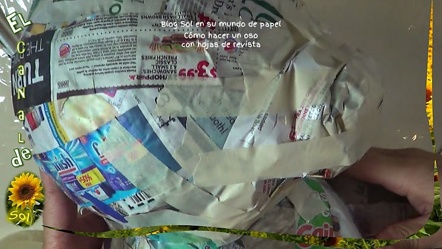 Arrugamos hojas de revista o periódico y con ellas rellenamos ambas bolas.