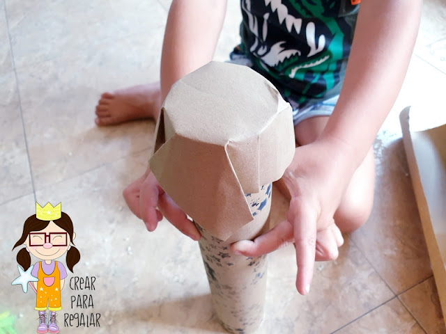 Una vez tengamos todo el contenido dentro lo tapamos en el otro círculo de cartón.