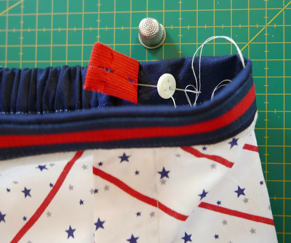 Cosemos el botón por el interior de la cintura: