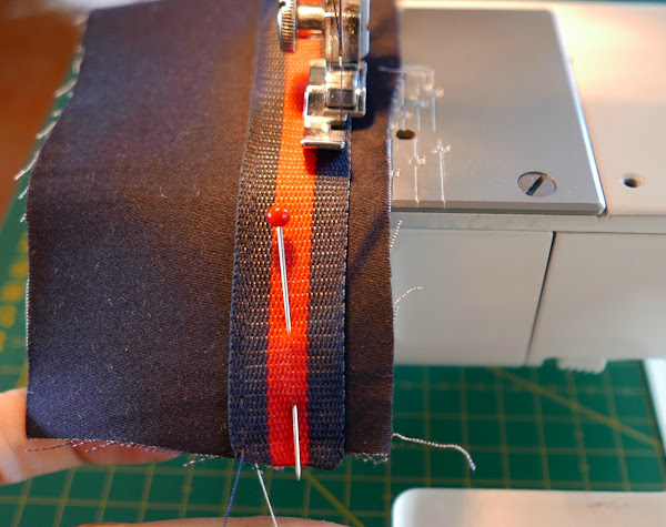 Ahora cosemos los laterales de la cintura. Si nuestra cintura no lleva la cinta decorativa sólo debemos coser uno de los extremos. Sino coseremos los dos, así ocultaremos el extremo lateral de la tira:
