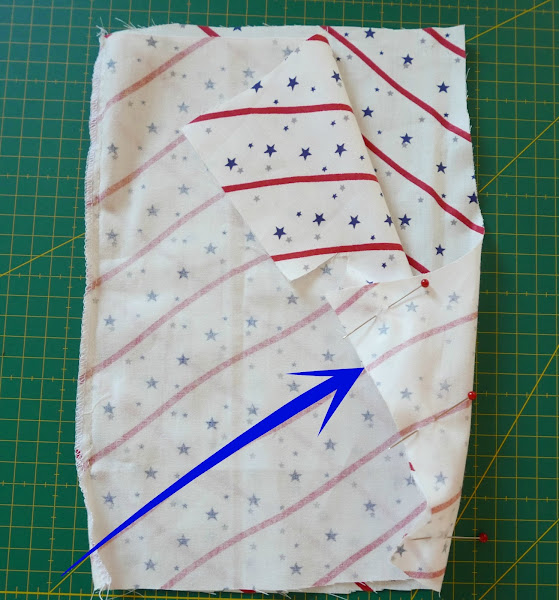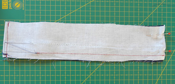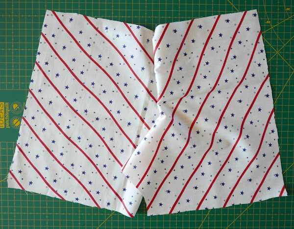 Una vez que tenemos la "espiga" trasera, podemos preparar los delanteros para que encajen también en las rayas. Para ello primero colocaremos la tela bien preparada (como veis en la foto):