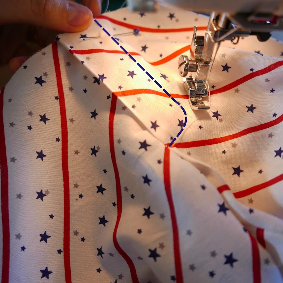 Para empezar tenemos que coser la zona marcada en la foto, con un pespunte por el revés: