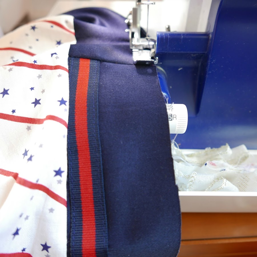 Cosemos la cinta decorativa sobre la cintura como se ve en la foto, colocada a un lado, pero teniendo en cuenta 1 cm de costura, para que cuando unamos la cintura con el pantalón, no nos la comamos.