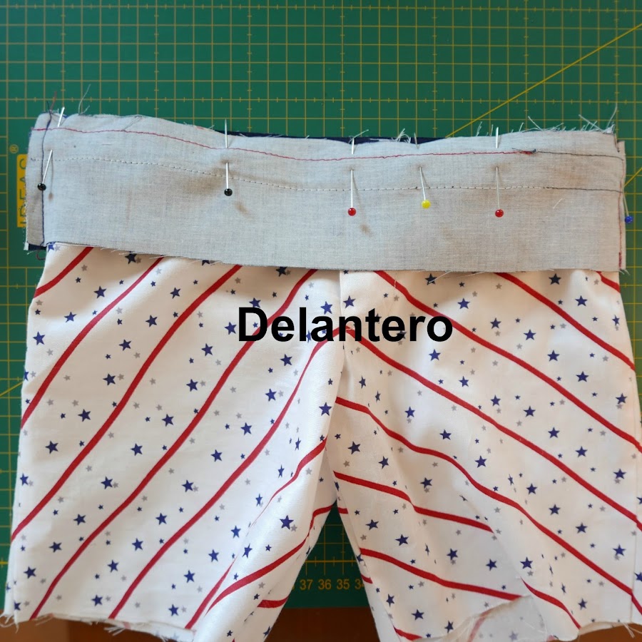 Llega el momento de unir la cintura al resto del pantalón. Primero lo haremos con alfileres: