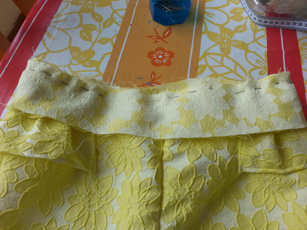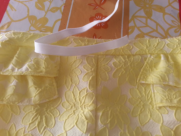 Cosemos la cinturilla y pasamos la goma elástica dejando un trozo que lo coseremos luego.