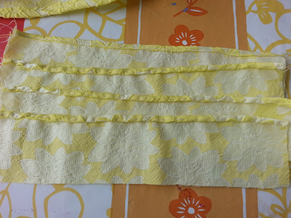 Cortamos 4 piezas de 30 cms x 8 cms de alto para los volantes.