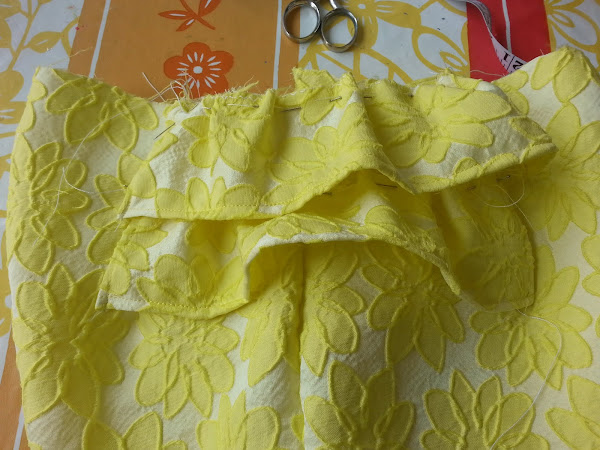 Como los volantes no van dentro de las costuras.Les pasamos un pespunte arriba y en los laterales.
