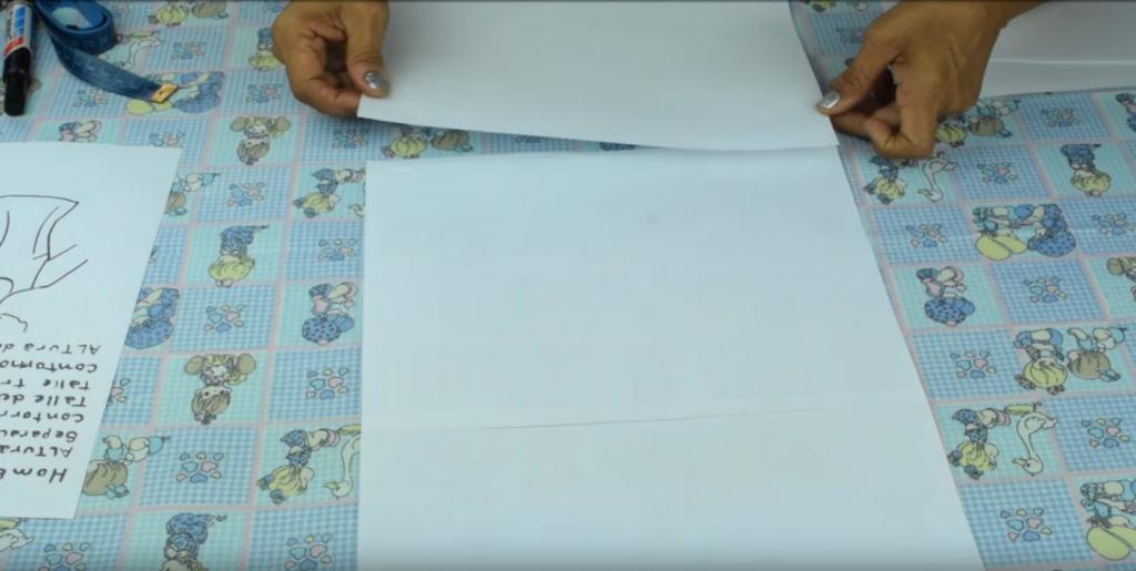 Lo primero que tenemos que hacer para confeccionar cualquier tipo de patrón es enfocarnos en que pieza queremos confeccionar, para ello, puedes buscar referencias por internet o bien, puedes re-modelar las prendas que tengas en tu casa, ten a la mano, bolígrafos, marcadores, suficientes hojas de papel, reglas y el pegamento. Vamos a unir las hojas, colocando estas sobre una superficie plana y vertiendo un poco de pegamento blanco por un costado del borde de la hoja de papel.