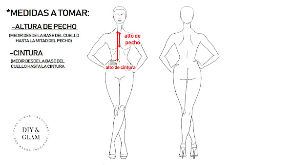 Las únicas medidas que necesitarás tomar serán; el alto de pecho y el alto de cintura. Ambas medidas las trasladaremos al patrón delantero y trasero.