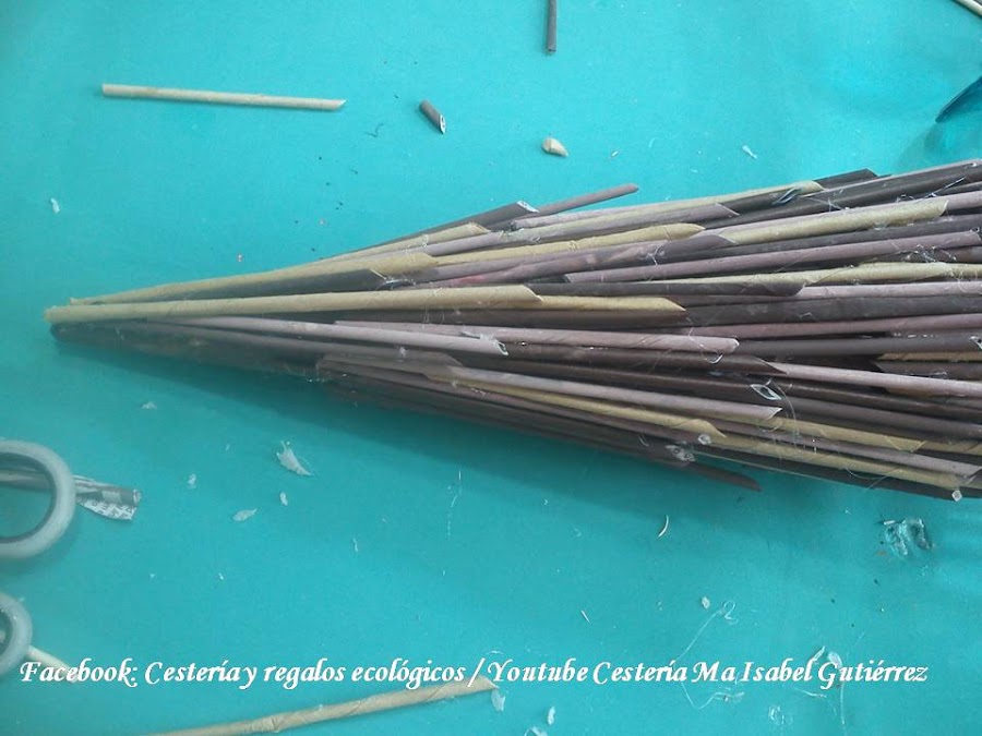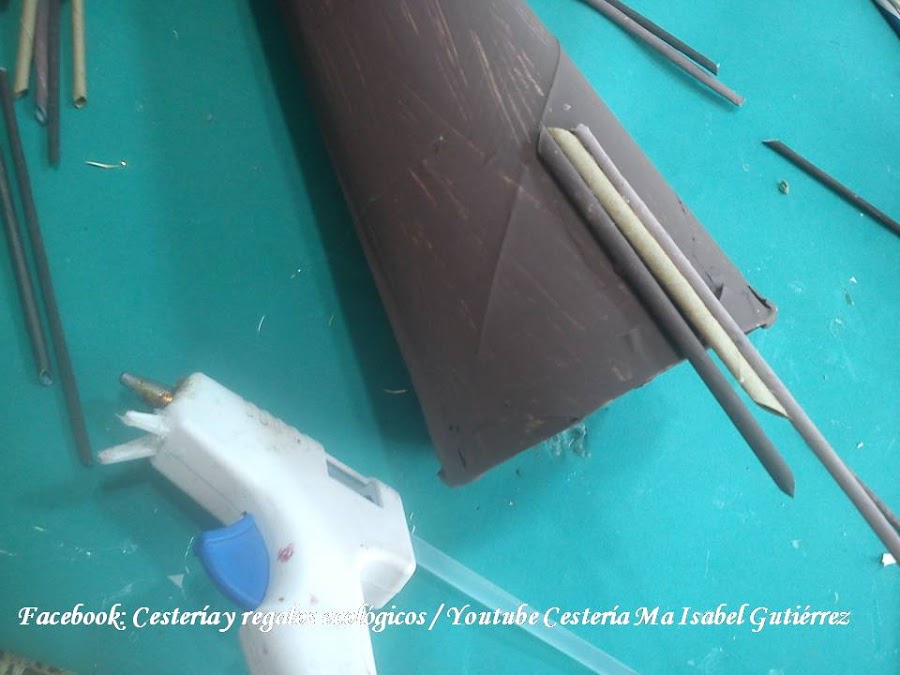 Pegamos, sobre la totalidad del cono, estas varillas de papel....