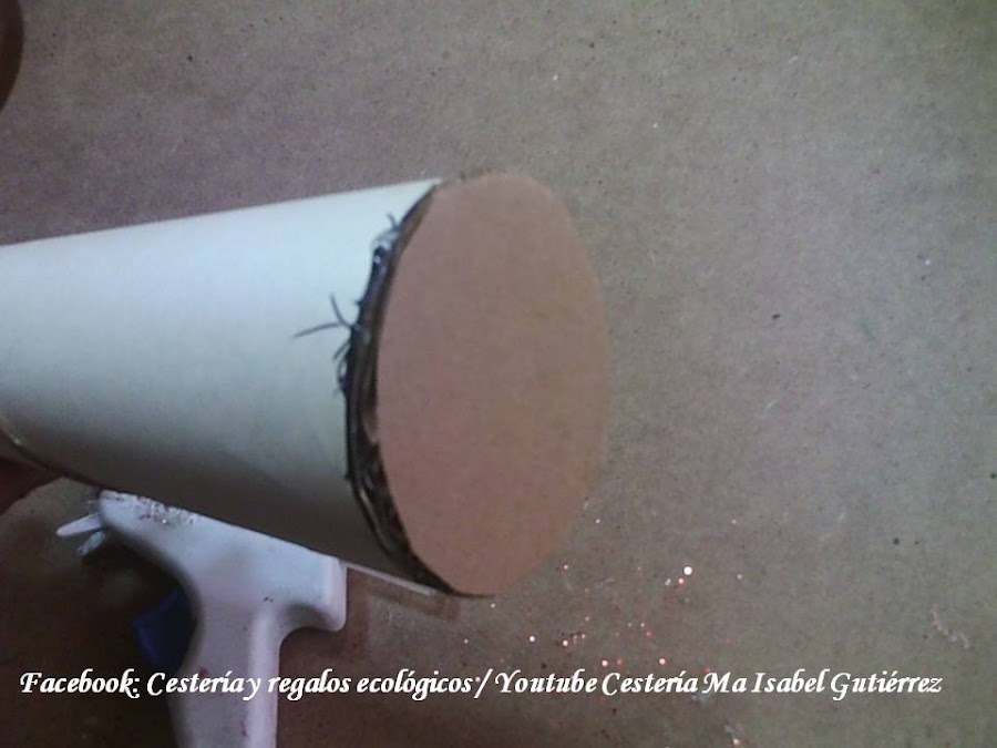 Aparte, con cartón flexible del tipo de carpetas de archivo o caja de cereal, enrollamos formando un cono, reforzamos con la cinta de carrocero o cinta de papel...