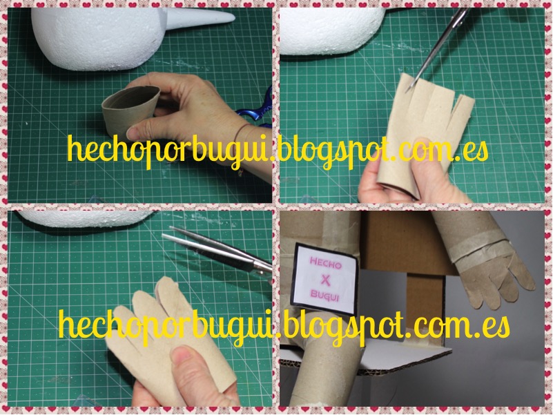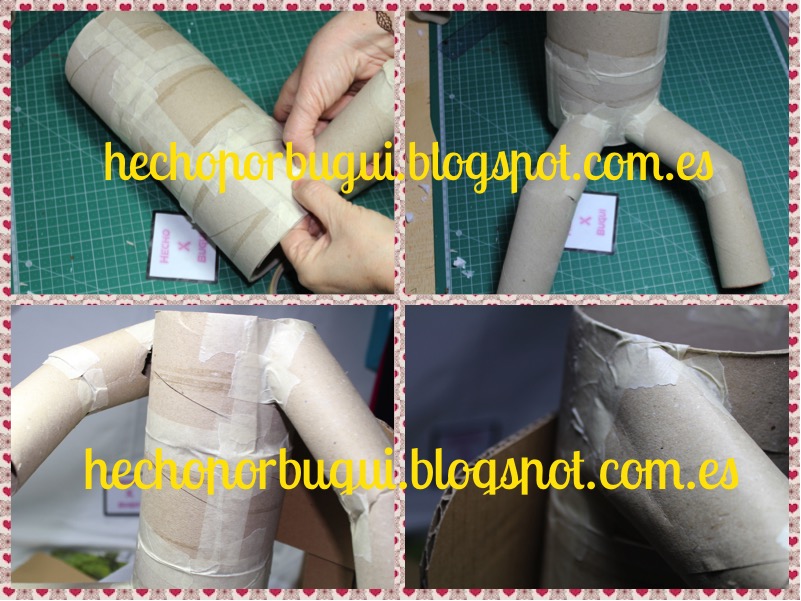 Haciendo un corte a la mitad de los tubos de cartón de papel de cocina conseguí la forma de brazos y piernas.