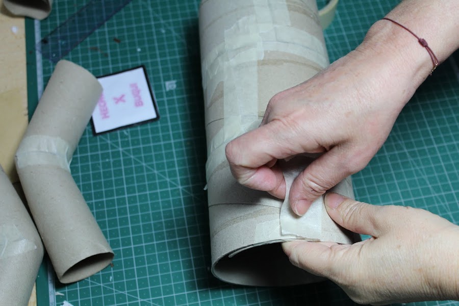 Juntando varios tubos abiertos para conseguir hacer un cilindro mas grueso, obtuve el cuerpo.