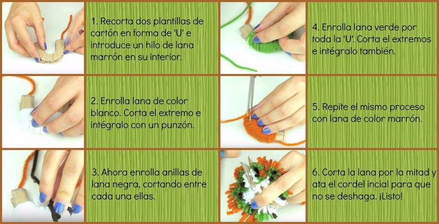 Si quieres que tu pompóm salga bello e igual al kiwi, solo tienes que tener todos estos materiales: