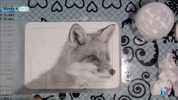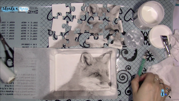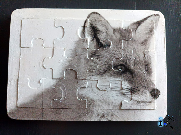 Para darle un poco más de vida hago en la parte de detrás del puzle otro decoupage con otro zorro, este en color.