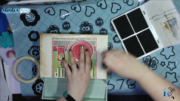 Luego le doy un toque envejecido a la caja utilizando tinta permanente ccolor vintage photo, así luego puedo barnizar toda la caja con barniz mate, que le va estupendo a esta caja.