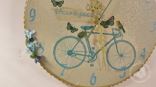 Llevaba mucho tiempo queriendo hacer un reloj. Una vez conseguido el mecanismo, que me costo lo mio, "solo" era cuestión de decidir que estilo darle y cómo hacerlo. La forma y material principal estaba claro: redondo y de cartón jajaja. Pero había que vestirlo, convertirlo en un objeto de decoración. La técnica del craquelado siempre me ha gustado.