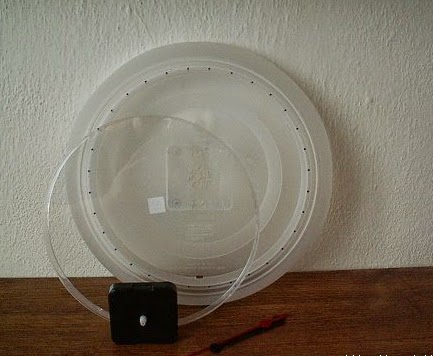MATERIALES: 1 fondo de papel, molde de reloj. Destornillador. Rollo de paja. Silicona. PROCEDIMIENTO: 1-Colocar el molde del reloj en la mesa de trabajo.