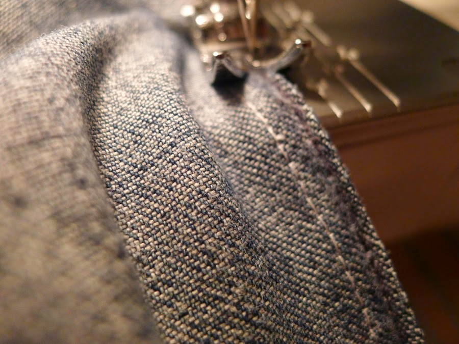 Y al final he pasado un pespunte en el bajo para asegurar el deshilado con el que he decidido terminar el bajo.