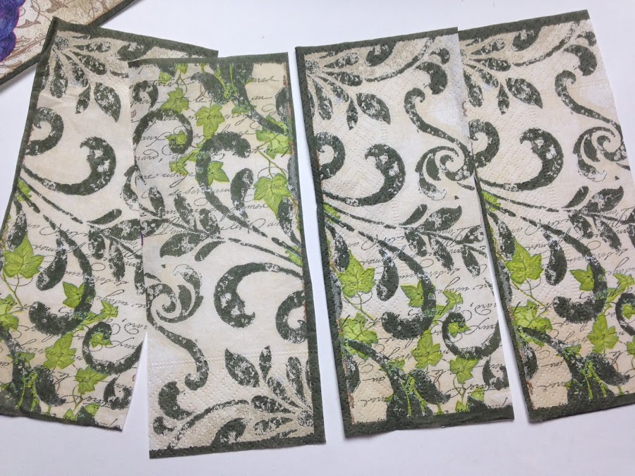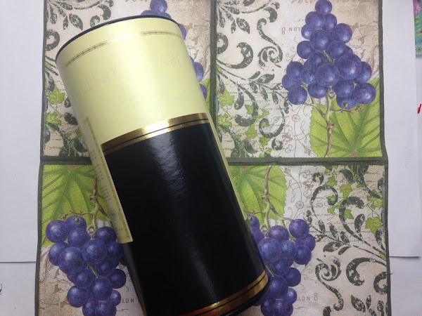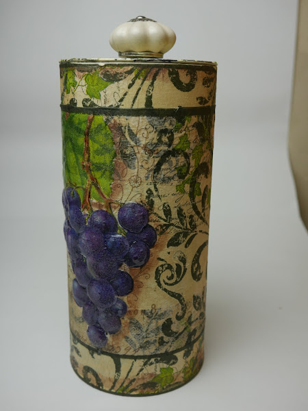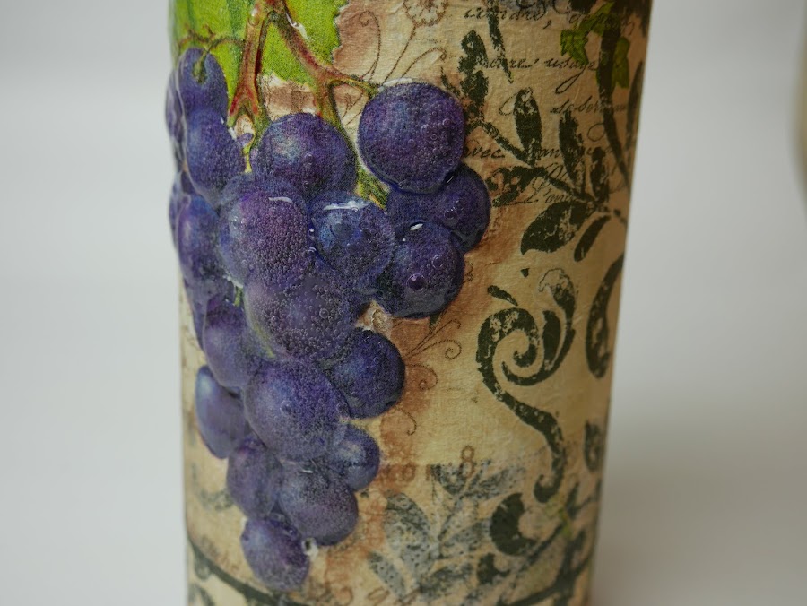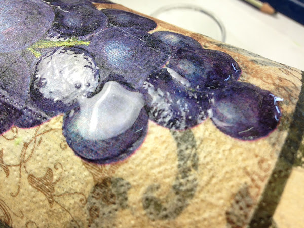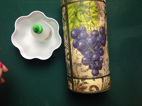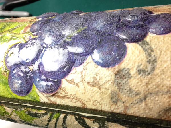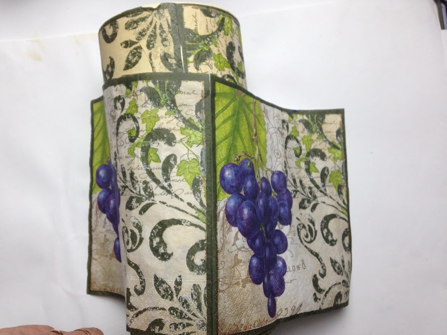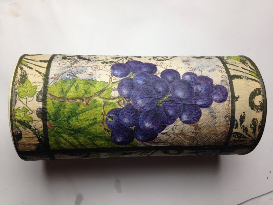 El trabajo lo realicé sobre una caja de cartón que era de una bebida, y emplee una servilleta con unos hermosos racimos de uvas .