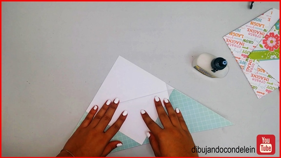 También aseguramos con pega el pequeño doblez en forma de diamante que hicimos en la parte frontal de nuestro sobre.
