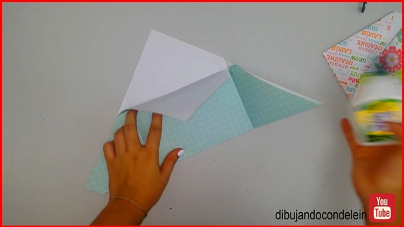 Vamos a desdoblar nuestro sobre y vamos a asegurarlo todo con un poco de pega, comenzamos por colocar un poco de pega en el primer doblez que hicimos.