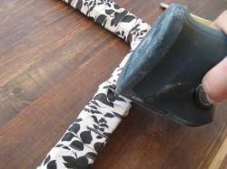 Con la tira enrollada en un ovillo para trabajar con más facilidad, he ido envolviendo el marco.