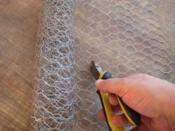 Después he cortado la tela de gallinero con unos alicates y la he grapado al marco.