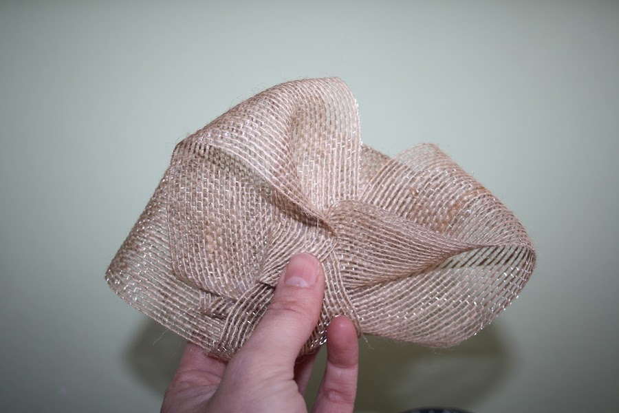 Empezamos haciendo alguna prueba para ver las distintas composiciones. Retuerce el lazo sobre si mismo y cuando tengas clara la idea que te apetece llevar, sujeta con un alfiler. Después dobla y vete pegando con la pistola de silicona.