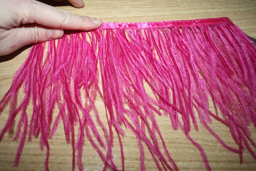 A continuación, vamos a cortar cuatro centímetro de la tira de plumas. Si queréis un efecto más dramático, le podéis añadir más.