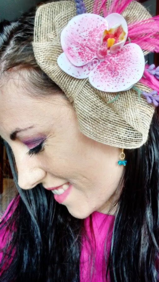 Por último, pegamos la orquídea en el centro de modo que queden visibles las ramas de lavanda y añadimos por la parte de atrás el prendedor para engancharlo al pelo. Et voilà!!!!