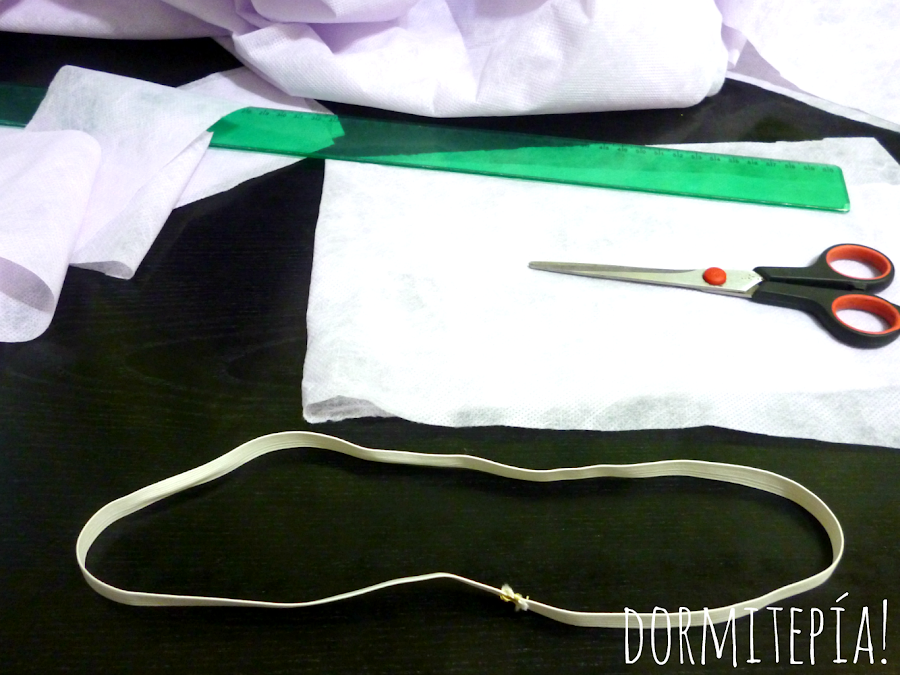 -Ahora la parte divertida: Tomar una tira de tela y doblarla a la mitad. Pasar la parte doblada dentro del elástico: