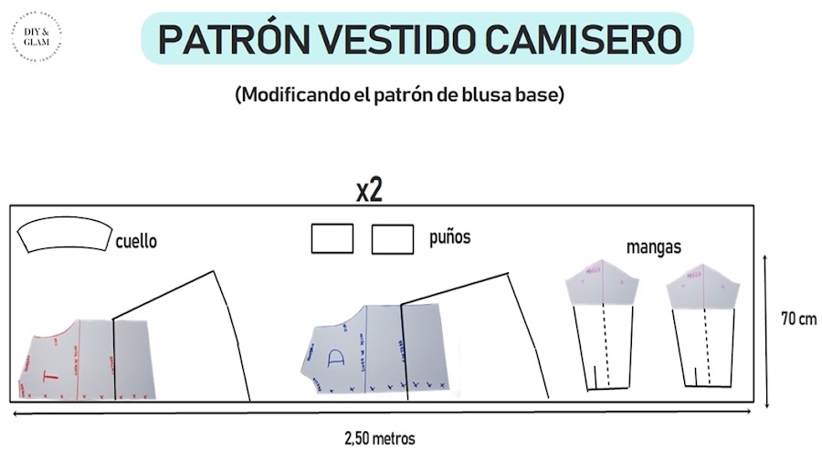 En la imagen de abajo te muestro la modificaciones que deberemos hacer al patrón sobre la tela