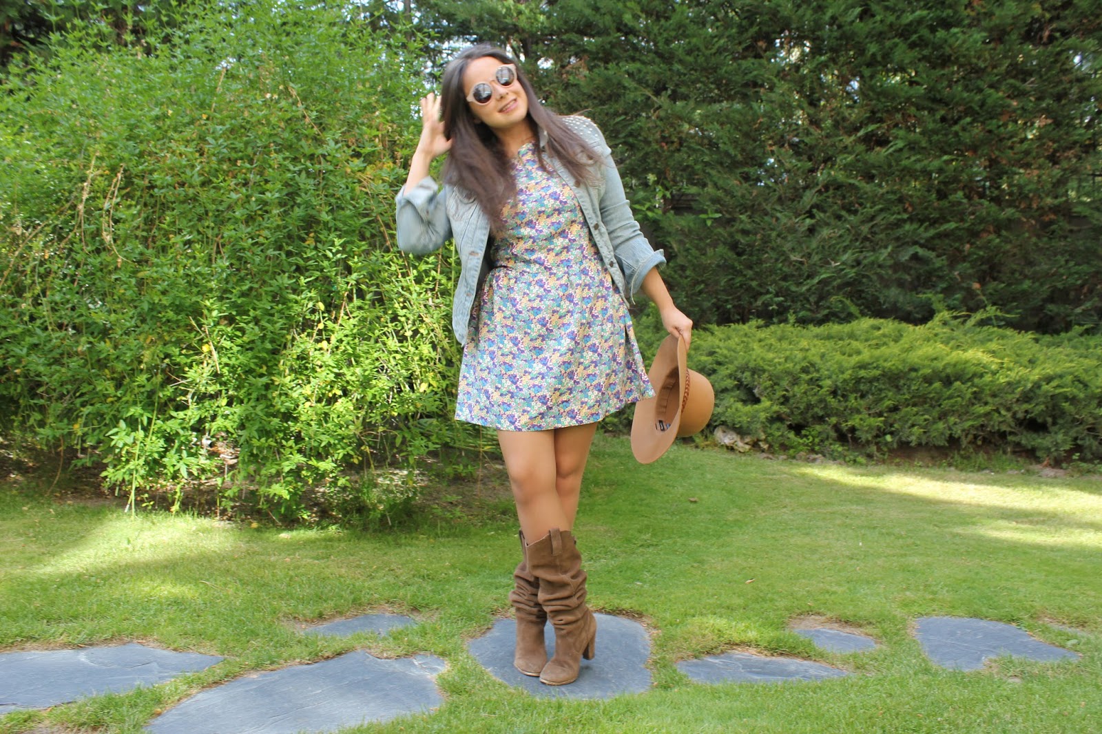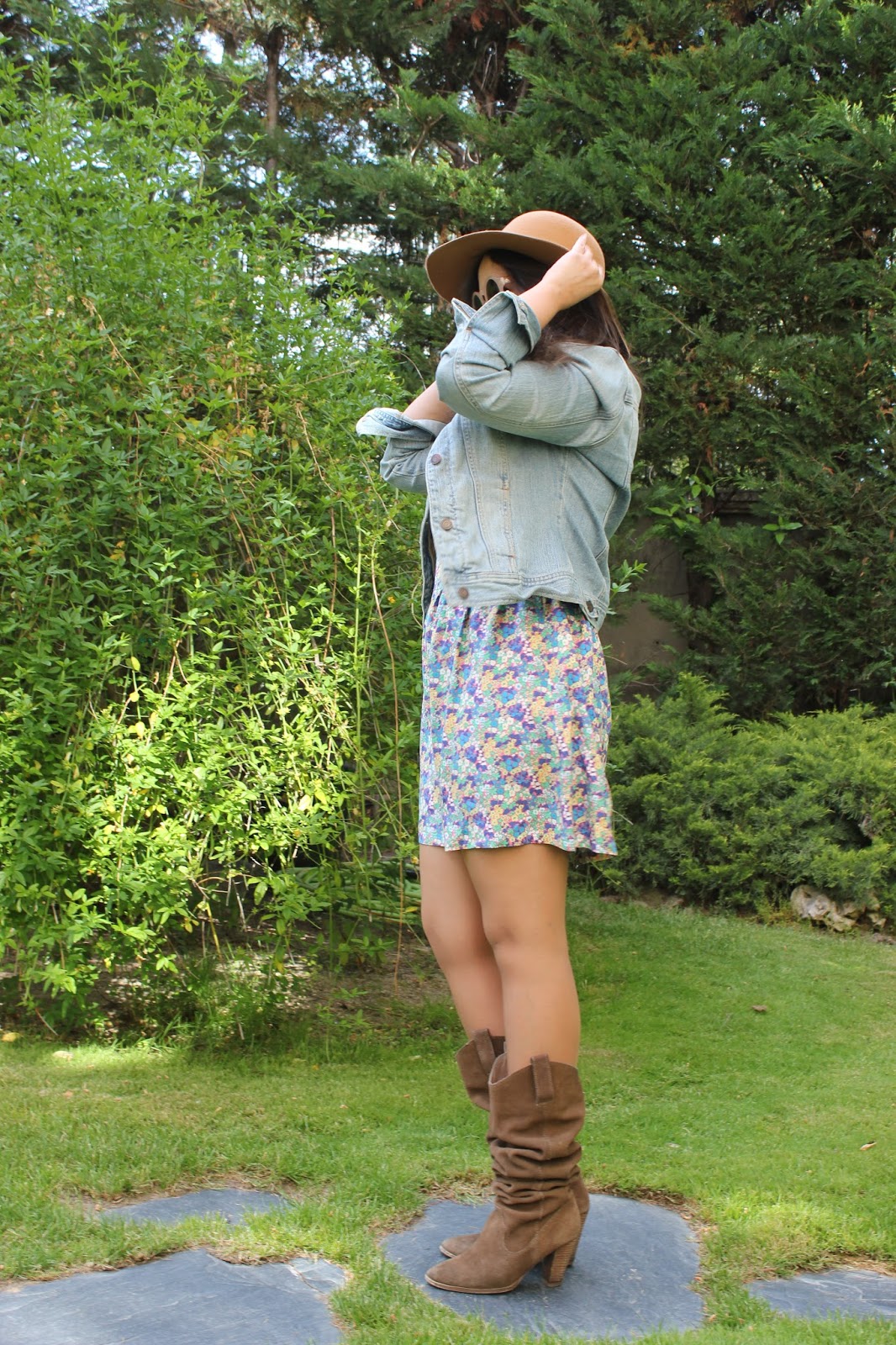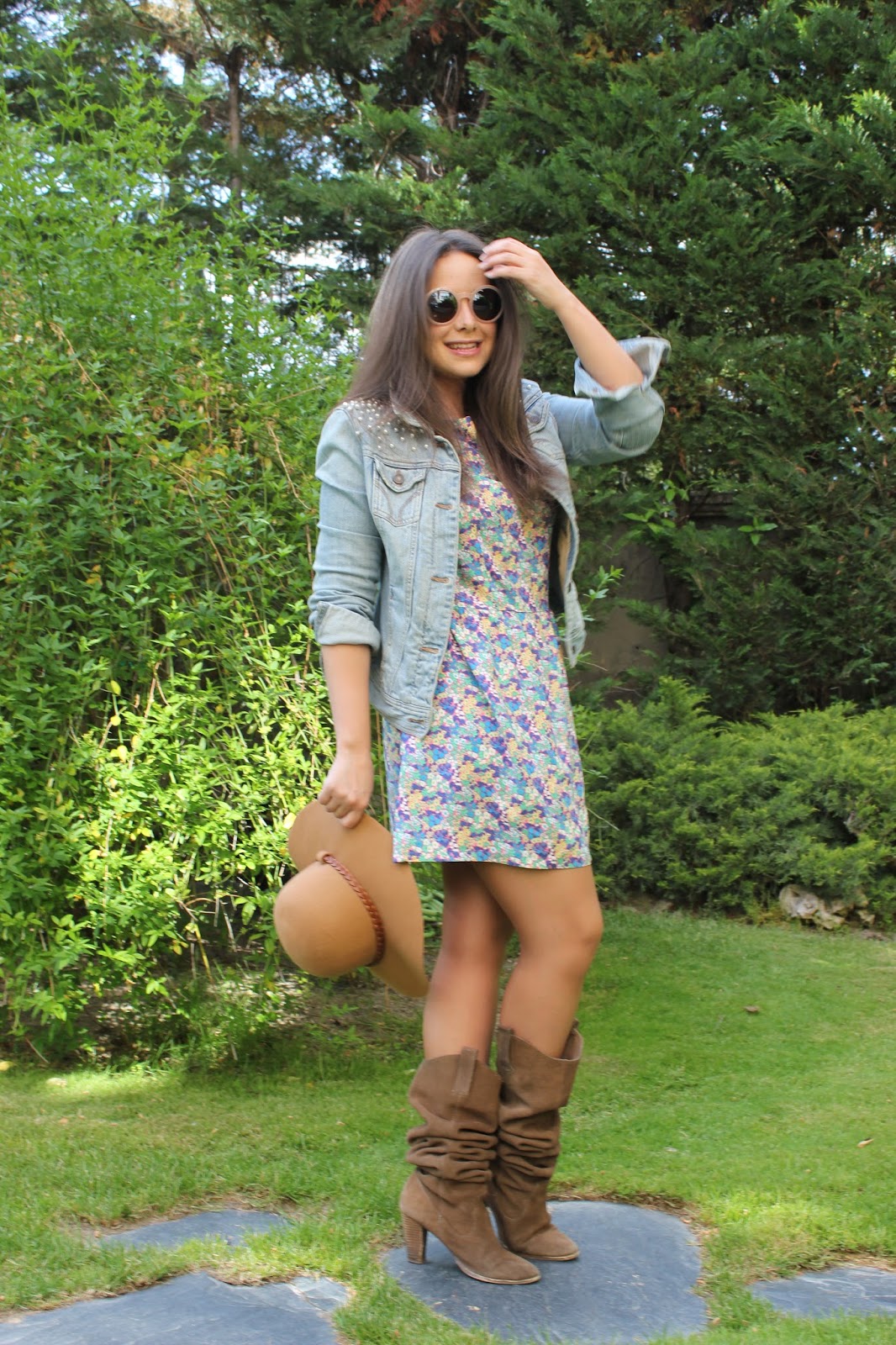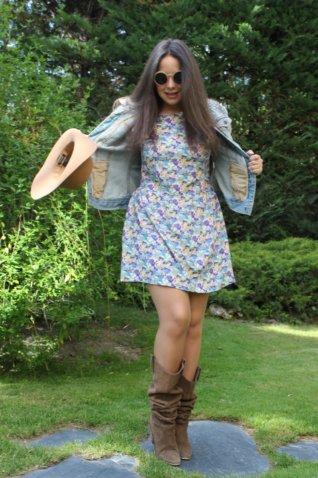 ¿¿¿Os acordáis del vestido de flores que hicimos algunas semanas??? (VESTIDO DE FLORES AQUÍ). Pues en esta ocasión me lo he puesto con unas botas y con una chaqueta vaquera y mirad que bonito queda :D Si es que este verano es imprescindible un vestido de flores en el armario!!!! Este vestido, consta de una parte superior ceñida, sin mangas y con una falda o faldón fruncida en la parte inferior. El largo es a vuestro gusto :D