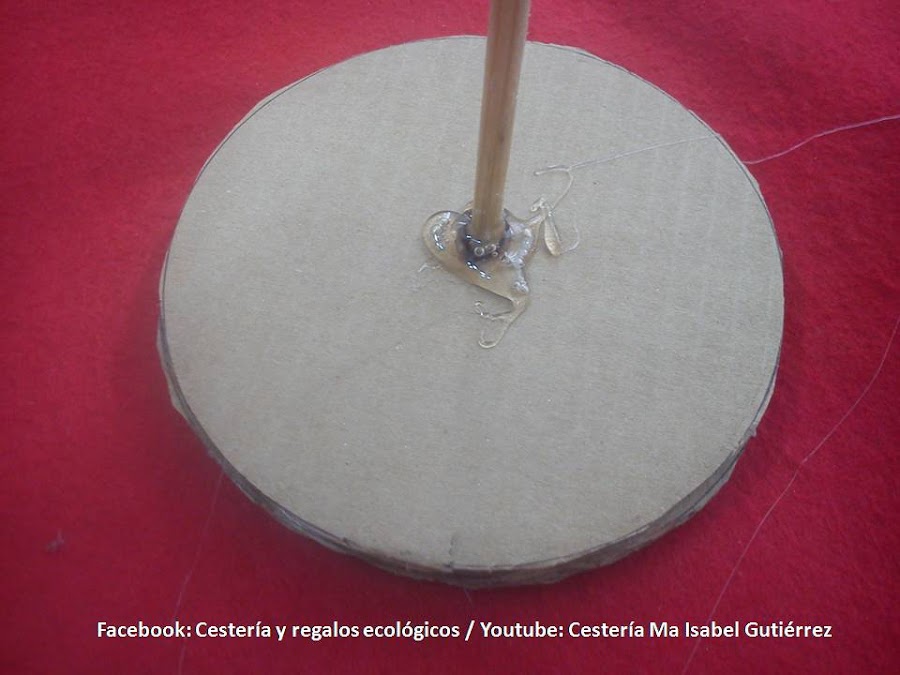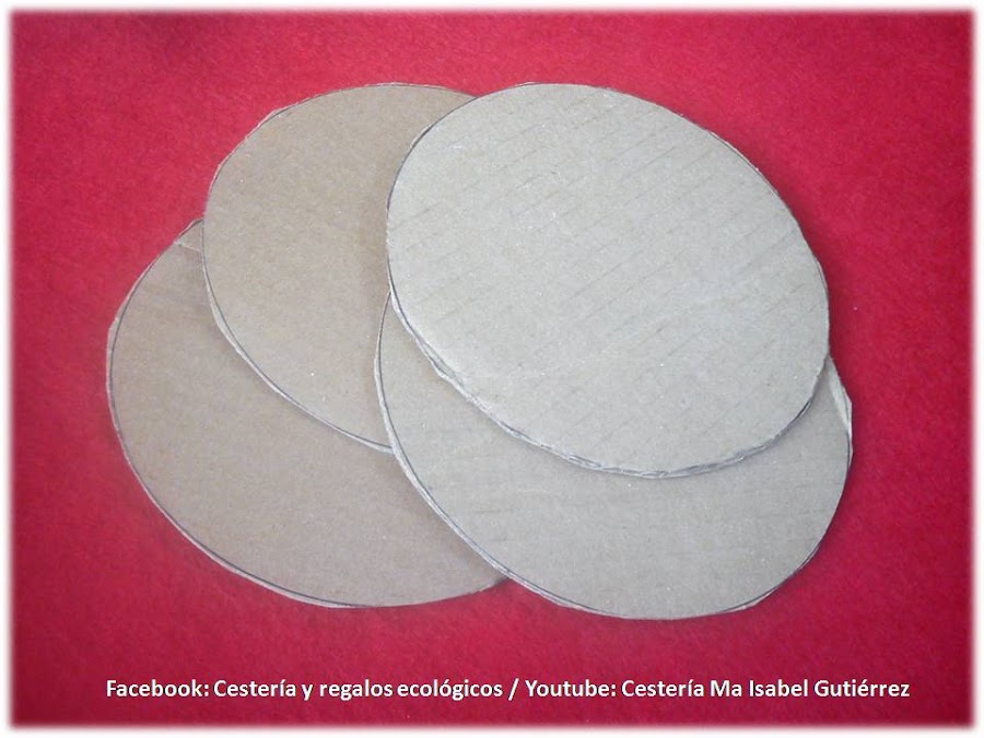 Para que la africana tenga buena estabilidad debemos hacer una base fuerte, por lo que vamos a cortar cuatro ruedas de cartón grueso y duro, el tamaño de estas ruedas será el ancho de la falda de la africana, así que debemos proporcionar bien las medidas. En este caso, el palo de madera que será el alto de la africana mide 45 cms., y estas ruedas miden 15 cms., de diámetro cada una...