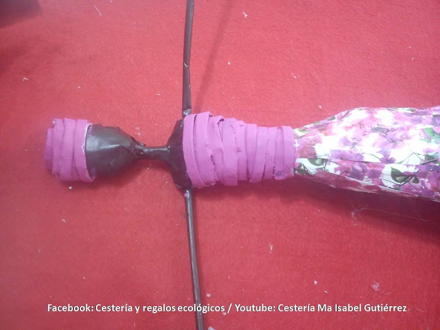 Con silicón o pegamento, unimos las varillas haciendo la cintura de la africana, aproximadamente 7 cms., desde los brazos hacia abajo...